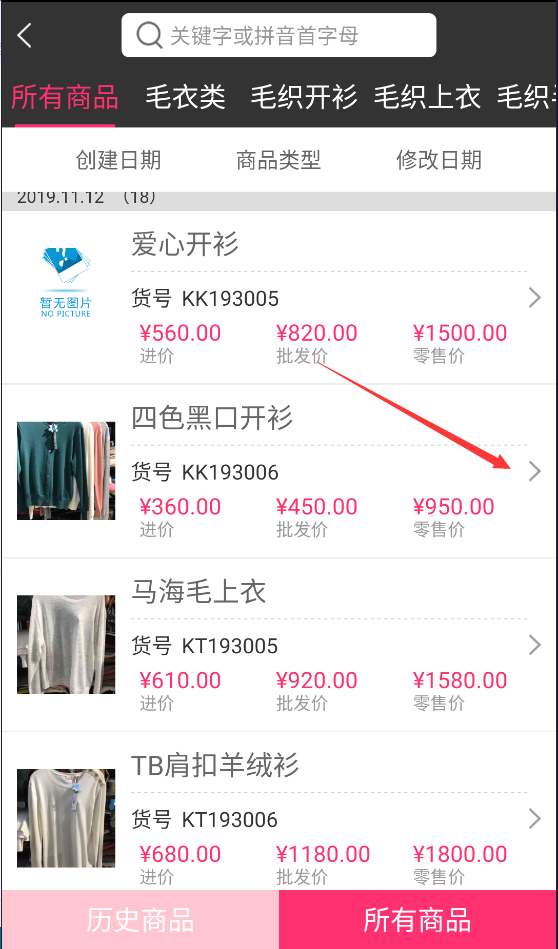 以上可以看出,一个单据包含两个嵌套的列表,外层列表是商品,内层列表是商品的颜色