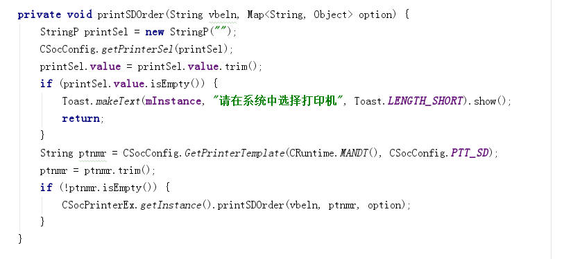 主要调用CSocPrinterEx.getInstance()... 来操作打印机,目前只能打印销售单