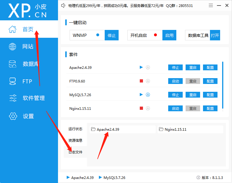 网站出错时,在小皮面板Apache里查日志